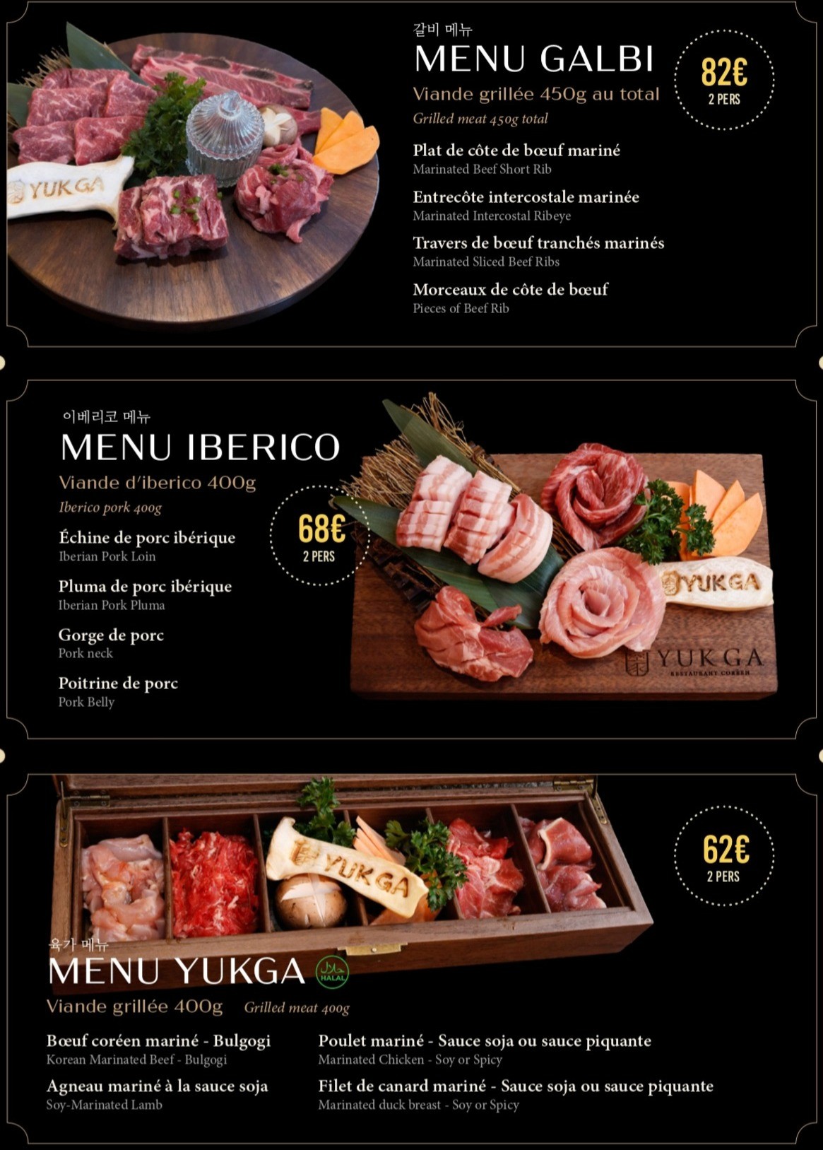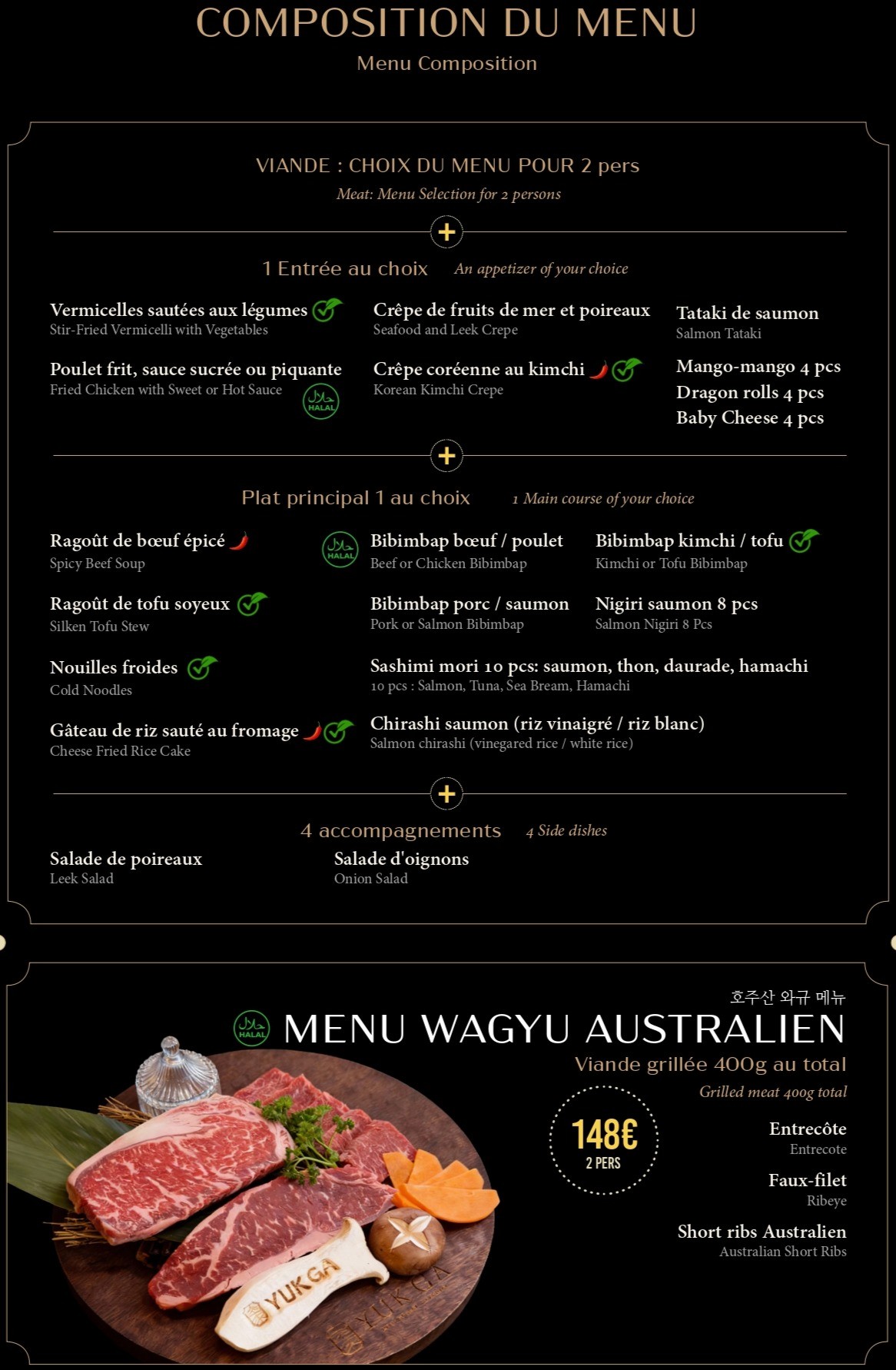 Chacun de nos menus est composé de 400g à 450g de viandes ainsi que d’une entrée et d’un plat à partager…