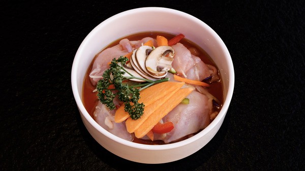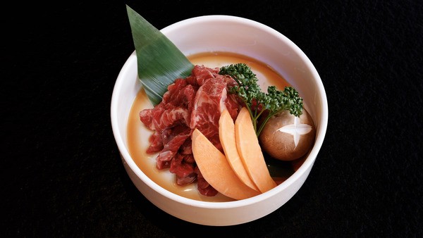 Huile d'olive, oignon avec sauce YUKGA, poulpe