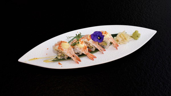Salmon, avocado, shrimp, cheese with flambéed Japanese mayonnaise